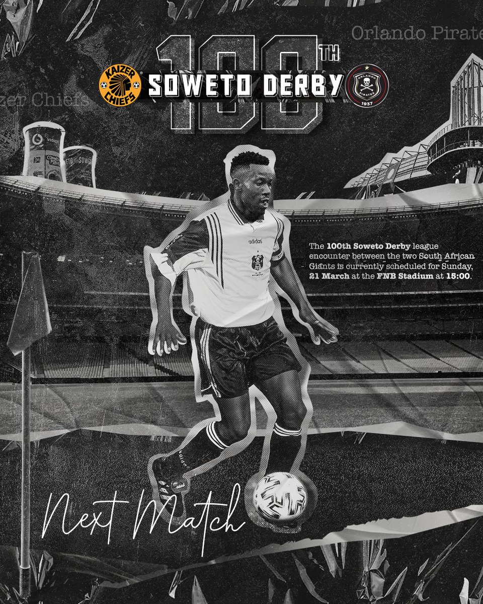 FNB Stadium Soccer City Kaizer Chiefs. South Africa will come to a standstill this afternoon when Kaizer Chiefs host arch rivals Orlando Pirates in the 100th edition of the Soweto derby and you can follow all of the live action below. Kaizer Chiefs head into todays DStv Premiership Soweto derby on.